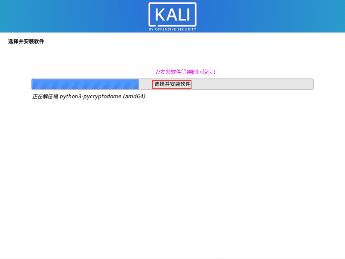 进入安装基本系统界面,需等待一段时间,之后进入软件选择界面