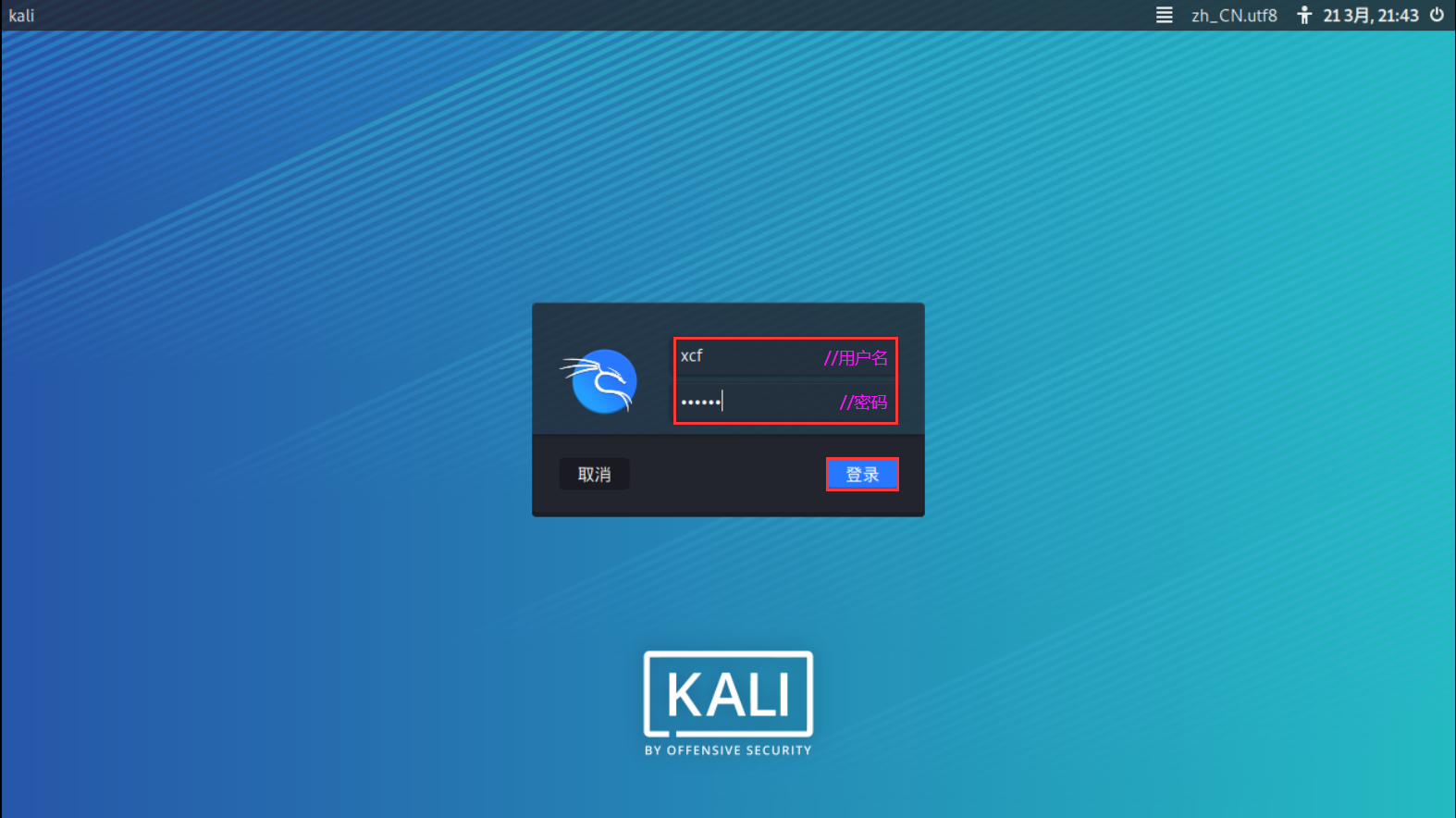 ④登录 Kali 并更新软件包