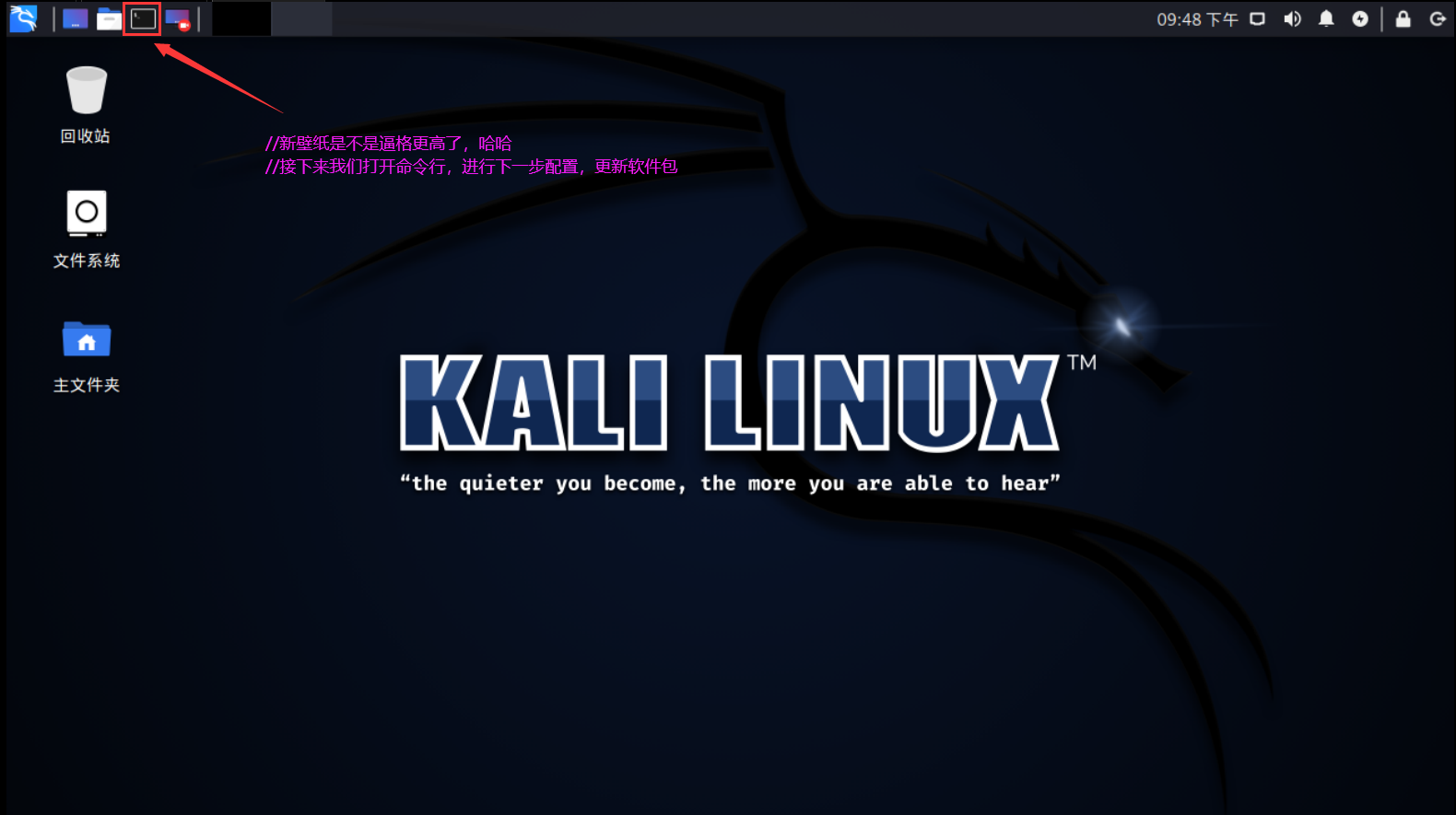 ④登录 Kali 并更新软件包