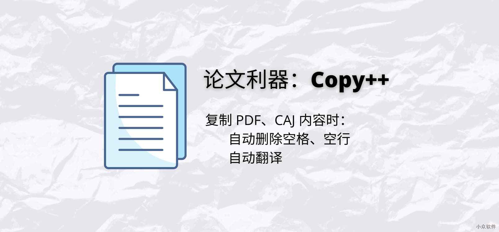 Copy++ 是一款帮助你去除复制 PDF、CAJ 内容时的空格、空行的小工具,另外还支持自动翻译功能,堪称论文神器