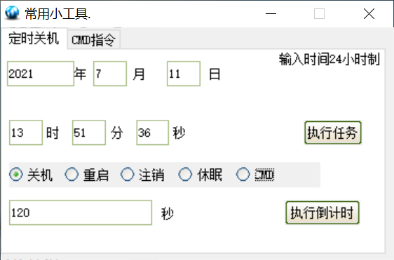软件介绍:是一款绿色小巧的定时关机软件,可以轻松实现定时关机,定时注销等功能。如果你刚好需要一个定时关机软件,相信是你最好的选择。功能特点:1、可以设定特定时间关机或注销。2、可以设定CMD。3、可以看到执行倒计时。