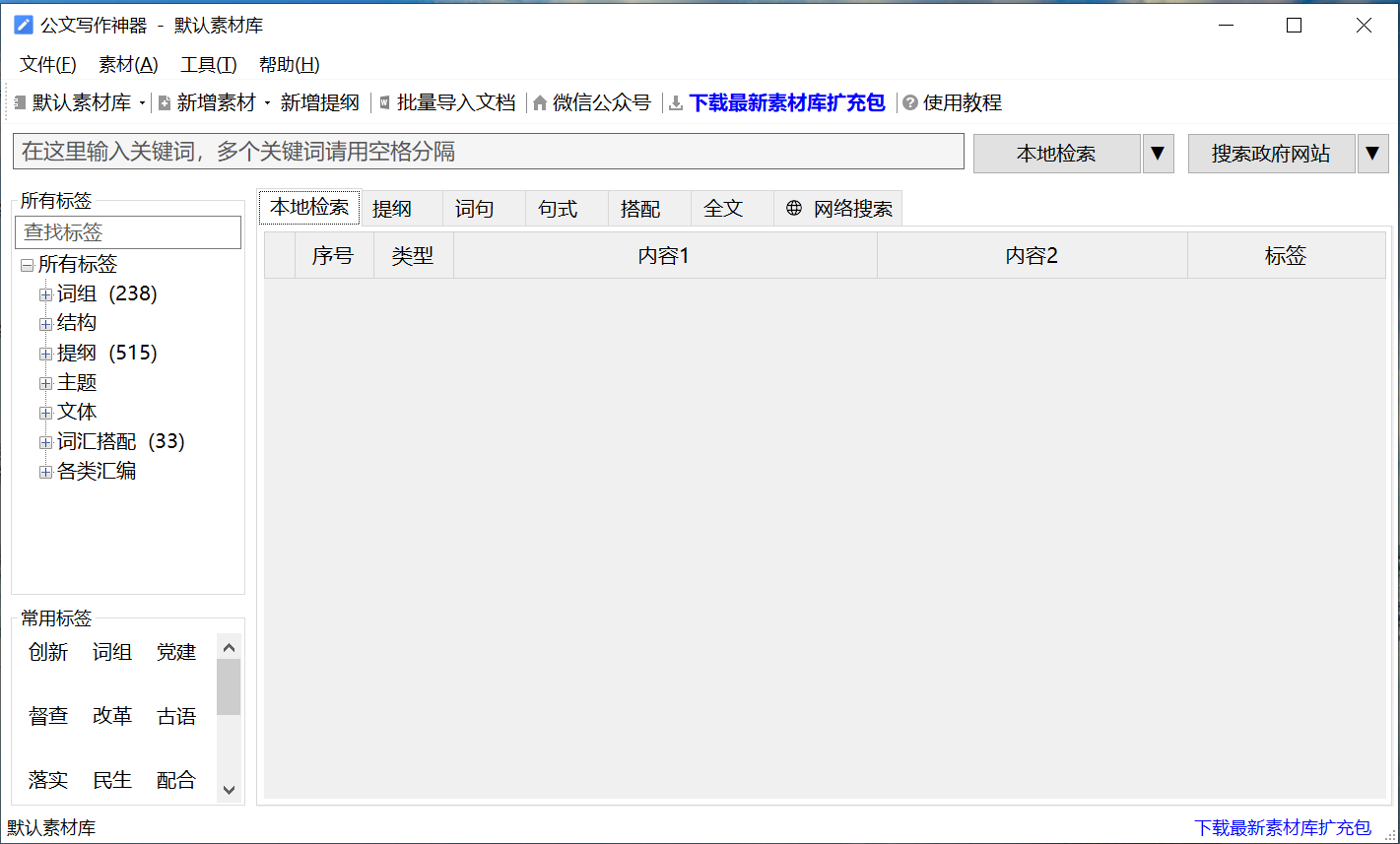 软件介绍:公文写作神器官方版是一款相当出色的文案工作者专用写作工具,公文写作神器最新版功能强劲,能够帮助用户轻松快速地进行文章写作,公文写作神器软件操作界面十分的简洁,便捷好用,提供了范文、提纲、金句查询等功能,能够帮你大幅提高写作效率。功能特点:第一个是跨数据库全文搜索功能。可以一键处理各种不同性质的各种材料。第二个是在屏幕上显示单词的功能,鼠标在哪里,并显示相关材料。第三个是开放上传功能,它汇集了各行各业的智慧,并定期更新最前沿的材料。第四是搜索在线资料,海量资源不是梦想。
