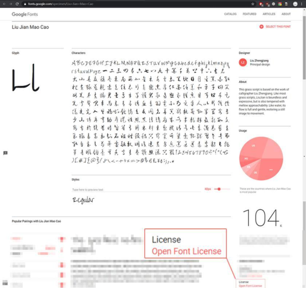钟齐流江毛草是依据SIL Open Font License 1.1授权协议,可以用于任何用途,包括免费商用。 开放字体许可证(OFL)是由SIL国际维护的。它试图在自由软件和字体设计社区的价值观之间达成妥协。它用于几乎所有开源字体项目,包括Adobe、Google和Mozilla。以下是Google Fonts页面上的截图,感谢本站网友“夜煞之乐”提供截图及字体文件。