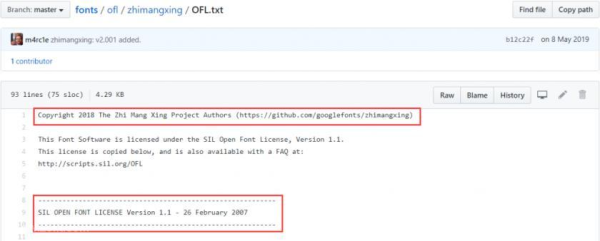查看字体的文件属性也可以看到,此款字体是SIL Open Font License 1.1授权的。