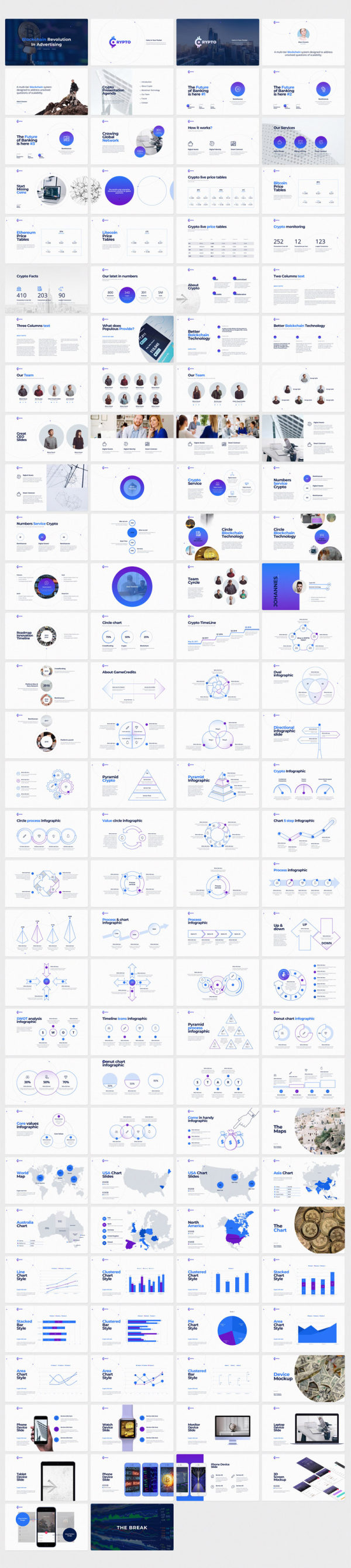 这是一套关于区块链展示的ppt模板,大气的页面设计,迷人的信息图表,惊艳的照片布局,渐变色的运用,让您可以表达任何关于区块链的展示。模板总共有122页,所有页面均可编辑,可以替换图片、颜色、字体。模板基于幻灯片母版设计,风格统一,分类清晰。模板还附赠2000多个矢量图标,手机和电脑的mockup。模板同时提供Keynote和Powerpoint的版本。