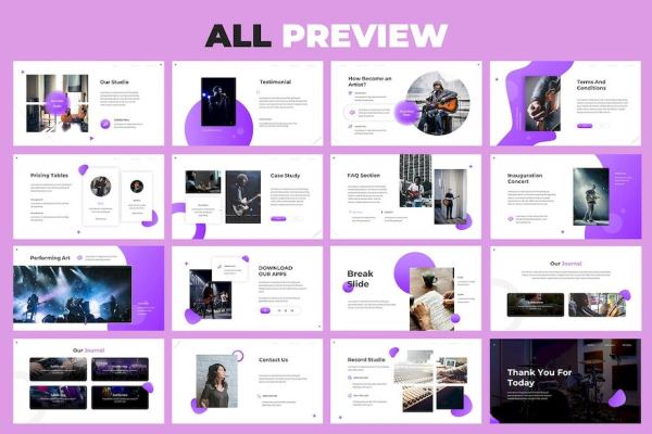 这是一款以音乐课程主题的项目演示模板,现代时尚的设计风格,可以有效的介绍您的音乐业务。文件内包含32+的ppt页面,每一页都拥有非常精美的排版,是您演讲的最佳选择。(注:不包含图片)