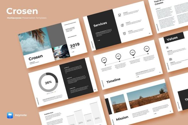 这是一个多用途Keynote模板,可用于任何类型的演示:业务,投资组合,公司,品牌,广告等,注重排版和实用性。(注:不包含图片)