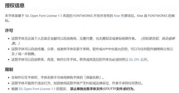 这款字体是依据SIL Open Font License 1.1授权协议免费公开,关于授权协议的内容、免责事项等细节,请查看详细的License授权文件的内容。