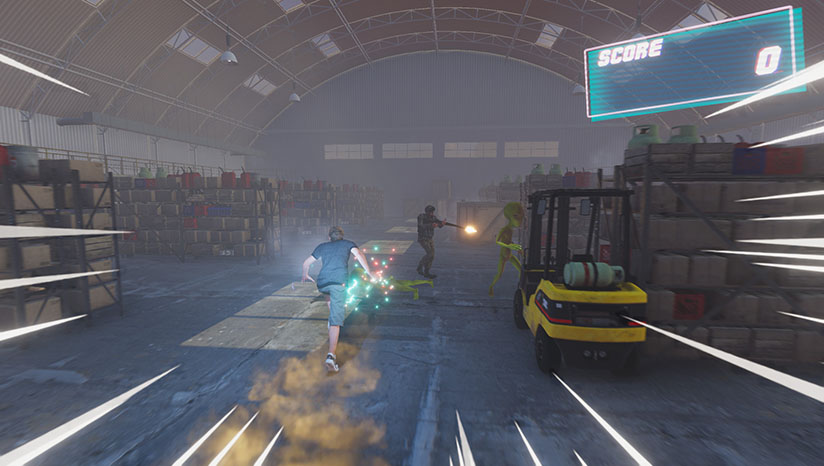 游戏中的外星人都在一个军事基地中,你要通过酷炫的加速奔跑来增加你自身的动能,并给外星人一份大礼。