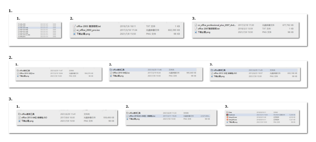 office2003,office2007,office2010,office2013,office2016,office2019安装包,附带激活工具文件展示