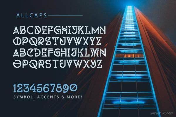Invasible是一款受太空电影启发的现代设计的英文装饰字体,具有超前的未来感,锋利的边缘,线条中空效果。字体全为大写字母,并包含了数字。非常适合用于极简主义设计的平面设计项目中。