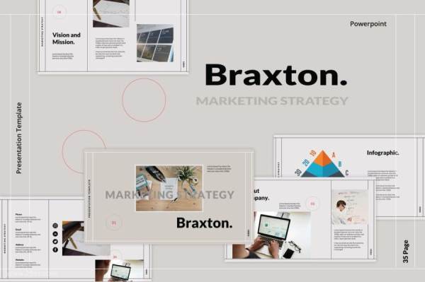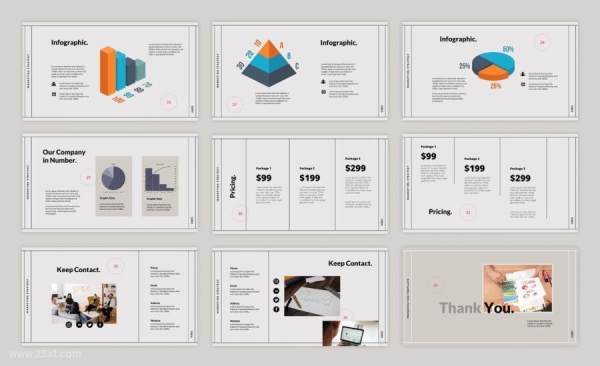 一套现代专业的商业市场营销主题PowerPoint模板,尺寸为16:9的宽屏比例,总共有35页幻灯片,包括多张易于编辑的创意信息图表。模板整体呈现现代创意风格,排版清晰,其中所有图形都可以随意调整颜色、大小,您可以根据设计需要自由编辑素材,是多用途商务演示的理想选择。