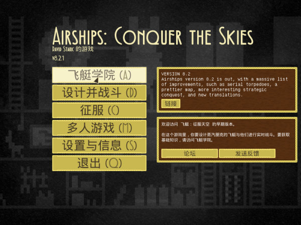 《飞艇:征服天空(Airships:Conquer the Skies)》是由David Stark制作发行的一款策略类游戏,采用像素风格打造。游戏中玩家可以通过收集资源,建造出拥自己独特风格的飞艇,并向着广阔的天空前进。