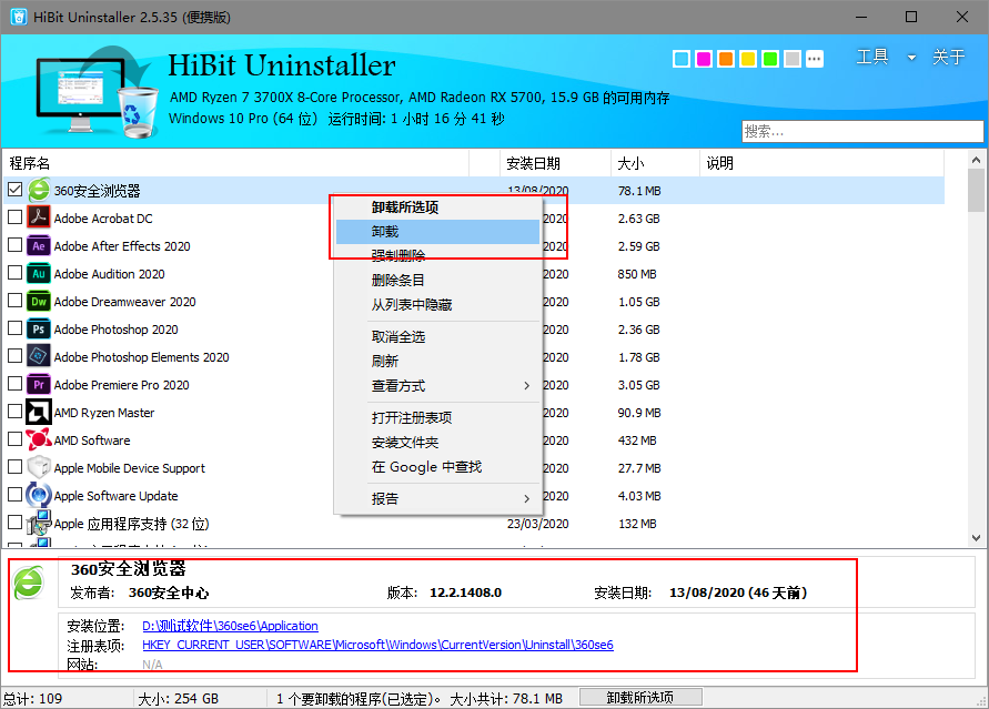 一款完全免费的电脑软件卸载工具:HiBit Uninstaller ,单文件,仅3M大小,无需安装打开就能用。打开软件后他会自动识别出电脑内安装的所有软件,选择需要卸载的软件,右键卸载即可,同时也支持批量卸载,他在卸载完成之后还会扫描软件残留的垃圾文件和注册表项,并帮你自动清除!
