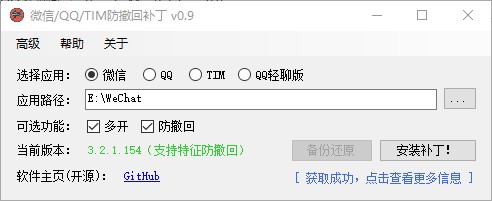 RevokeMsgPatcher,支持 PC 版微信、QQ、TIM 客户端的消息防撤回,并且还附带了微信多开的功能。