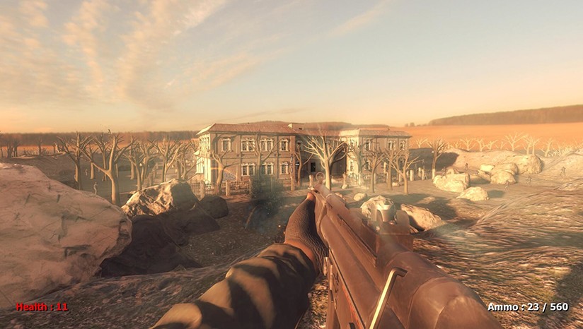这是第一人称射击游戏,玩家是拥有多种武器的射击者,玩家可以自由探索周围区域,敌人散布在玩家周围和建筑物内部,玩家可以杀死敌人或避免敌人的攻击并保持健康,玩家可以还抢敌武器。