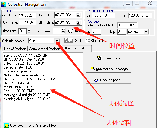 1.查询天体的赤纬、时角等信息,