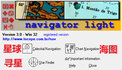 有时候抬头望天,看到颗很亮的星星,却不知道她叫什么名字,打开这个软件查询下,就知道了本软件主要用到的功能:1.查询天体的赤纬、时角等信息,2.查询任意位置头上所见星星的 位置等信息3.海图功能 主图 星体资料