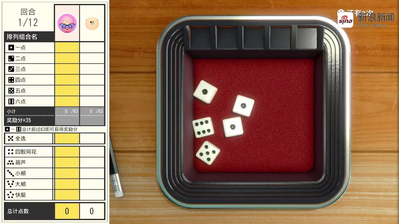 每个玩家回合将五个骰子丢进骰子杯里, 摇动后翻开来, 每个回合最多有摇三次机会