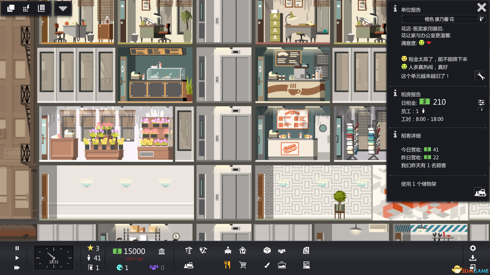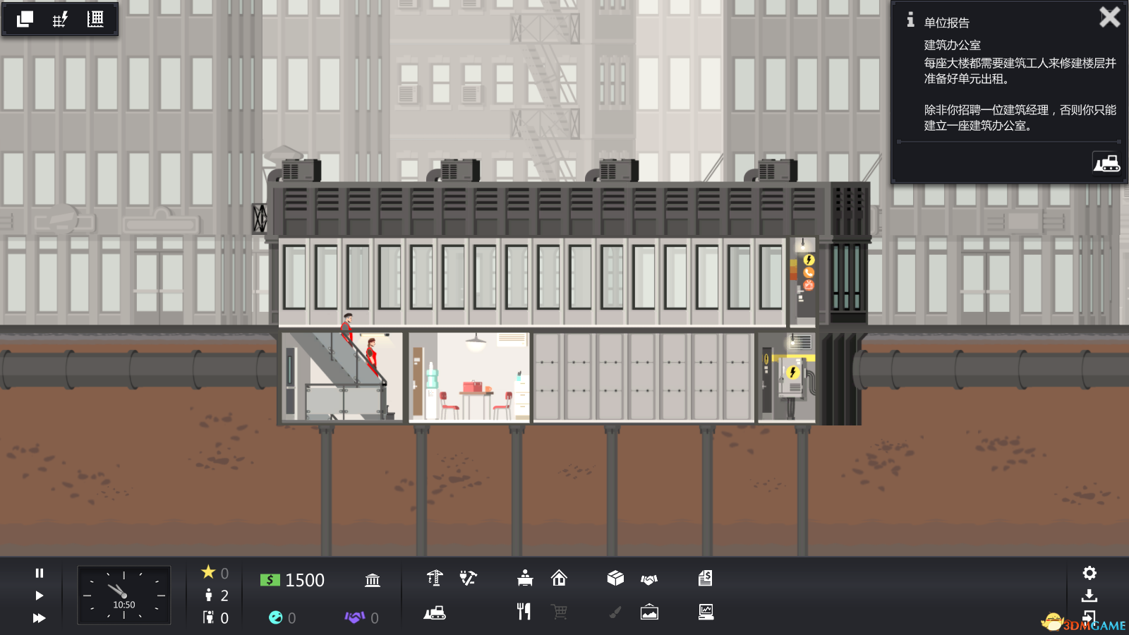 《大厦管理者(Project Highrise)》是由SomaSim制作的一款模拟经营类游戏,游戏中玩家管理一座大厦,不断满足大厦内居民的需求,合理规划布局,吸引更多居民,使用资金扩大规模!