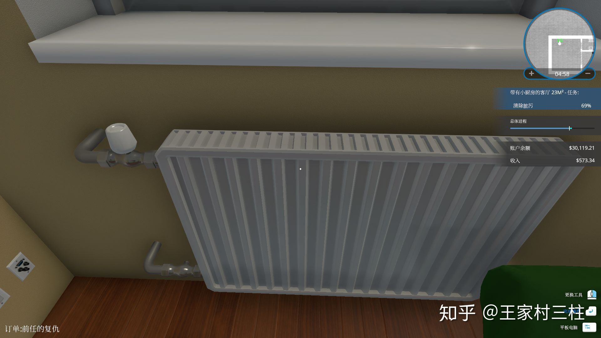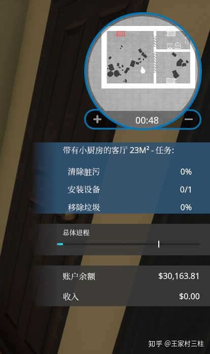 进入客户住宅后会显示全住宅需要清理的杂物/安装部件,以及当前房间需要完成的任务