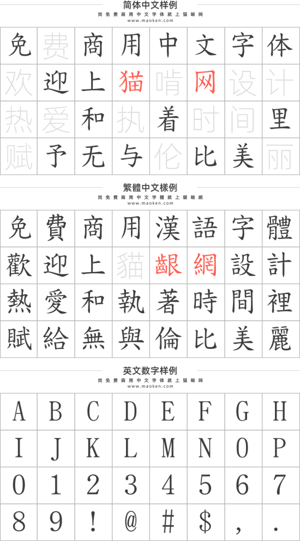 这款字体注意事项: