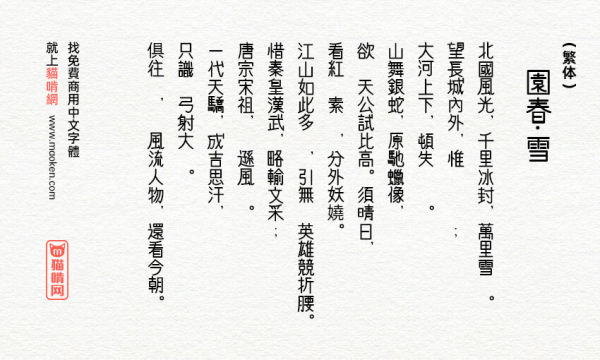 下面的字体使用范围是猫啃网按照经验整理的使用范围,仅供参考,具体的使用范围和场景,或者有特殊的需求或疑问,请自行联系字体作者咨询。