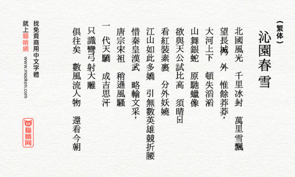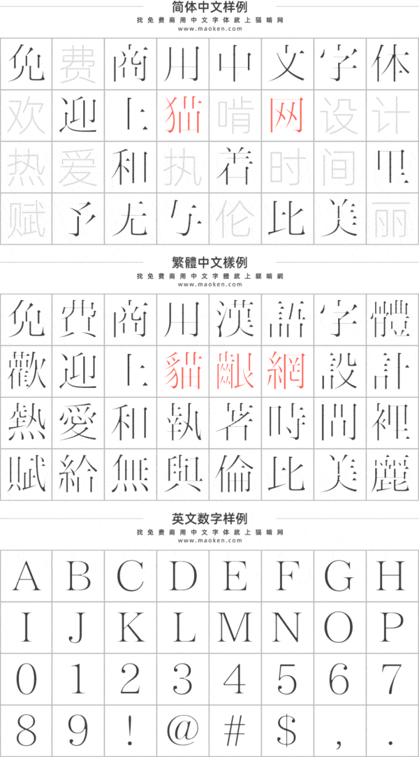 字体授权:晴空明朝以IPA明体为基础改造,采用IPAフォントライセンスv1.0授权发表。在猫啃网下载的字体包中已经附带IPAフォントライセンスv1.0授权文件,如甲方或公司需要出示授权文件,直接使用此文件即可。