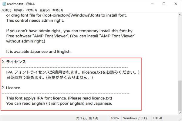 这款字体是依据IPAフォントライセンスv1.0授权协议免费公开,关于授权协议的内容、免责事项等细节,请查看详细的License授权文件的内容。