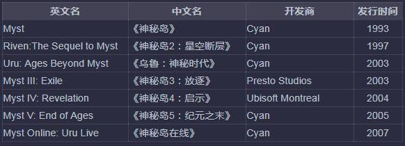 自从Cyan公司于1993年推出《神秘岛》(Myst)之后,此一系列作品便成就了游戏史上的一则传奇(全球为数不多的销量超过暗黑系列游戏的作品)。