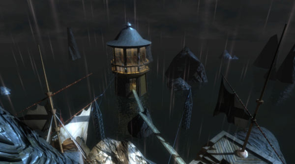 同样在2000年,Cyan又发布了realMyst,这个才是真正的“重制版”——一个完全的真3D游戏。不仅可以在场景中自由行走,还加入了如降雨、雷暴、日落以及白天黑夜循环的天气系统,增加了一个新的纪元世界:结晶纪元(The Rime)。另外增加了一个小细节是在游戏的主世界神秘岛上,添加了一个新的建筑——Ti’ana的坟墓,她是游戏角色Atrus的祖母,也是Myst系列故事中的主要角色。realMyst在某种程度上可以看做是一个技术演示,来给Cyan的下一部作品:Uru打基础。