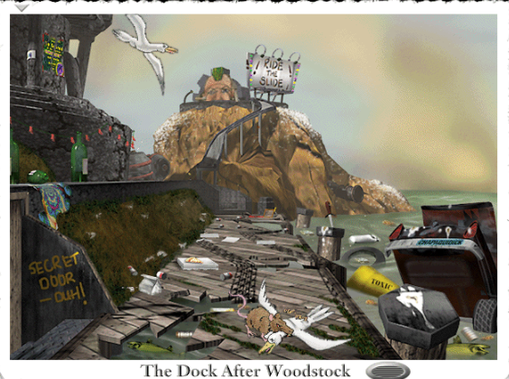 整个神秘岛是通过进行实际的3D环境建模,然后使用Hypercard软件,将模型分成了大约2500张二维可交互图像制作出来的。换句更通俗易懂的话来说,这就像是烤了一整块面包,然后把它切成了面包片。要做成“真实全3D”,在当时那个时代而言,根本无法在普通配置的计算机上运行(译注:实际上,Doom初代与Myst是同一年发行,但前者是真3D,由此可见Doom的技术力……也因此开创了一个Doom黄金时代)。