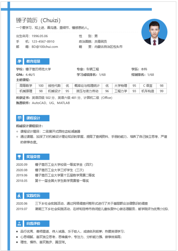 介绍:简历为word形式,本模板适合没有实习经验的同学求职实习或正职时使用。