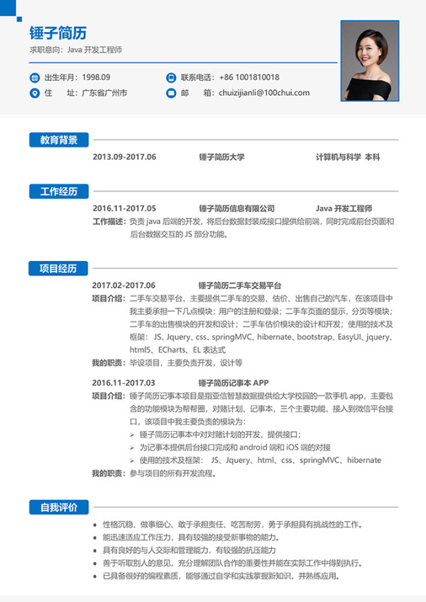 介绍:简历为word形式,适合应届毕业生在校招中求职程序员岗位时使用。