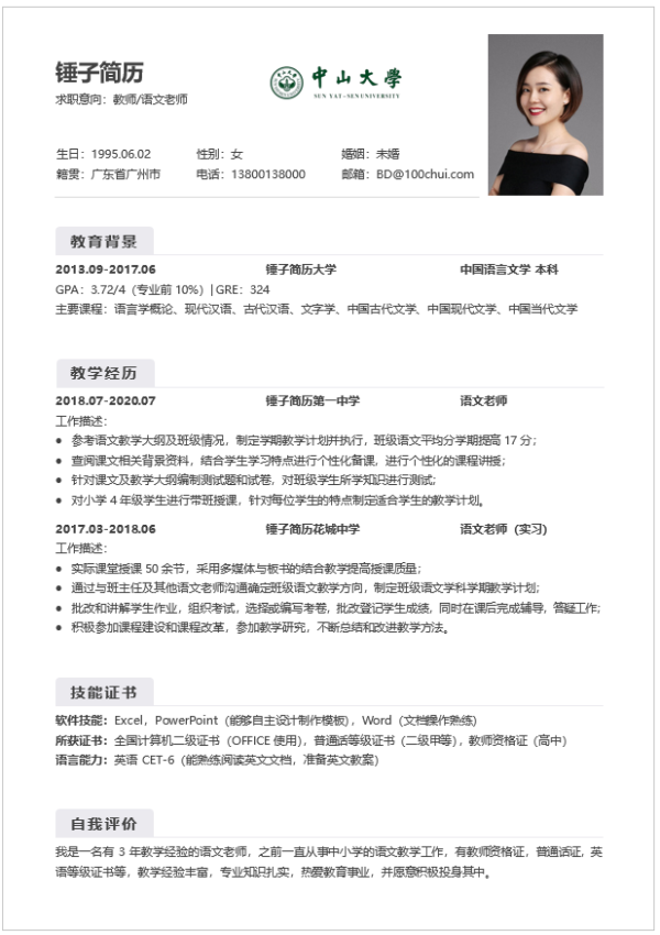 介绍:简历为word形式,适合应届毕业生在校招中求职教师岗位使用。
