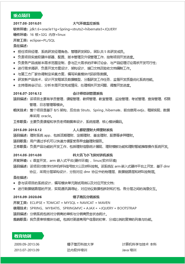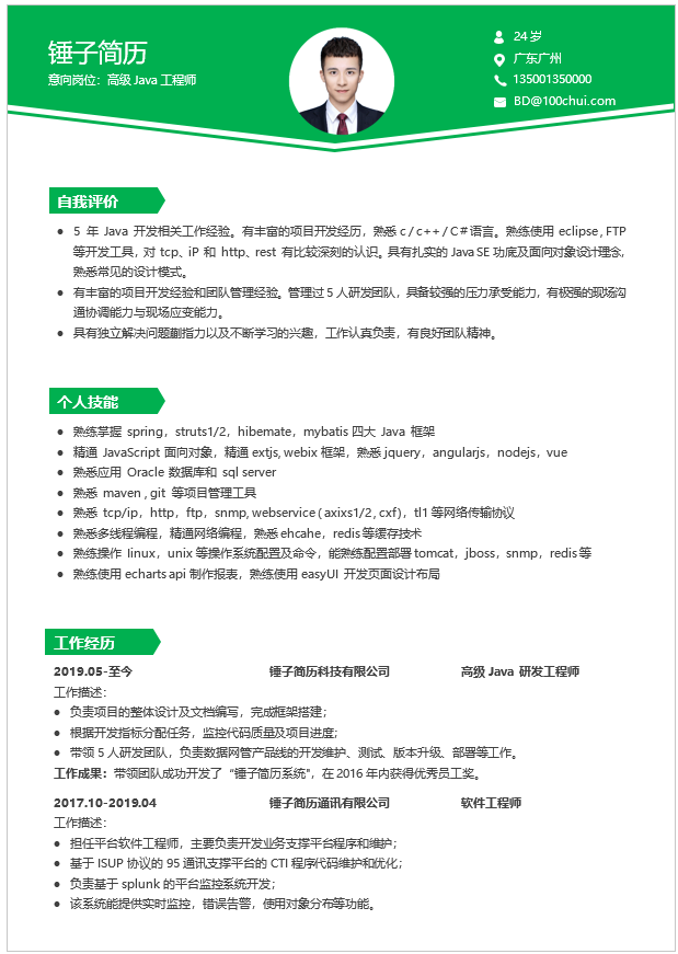 介绍:简历为word形式,适合在社招中求职Java工程师岗位。