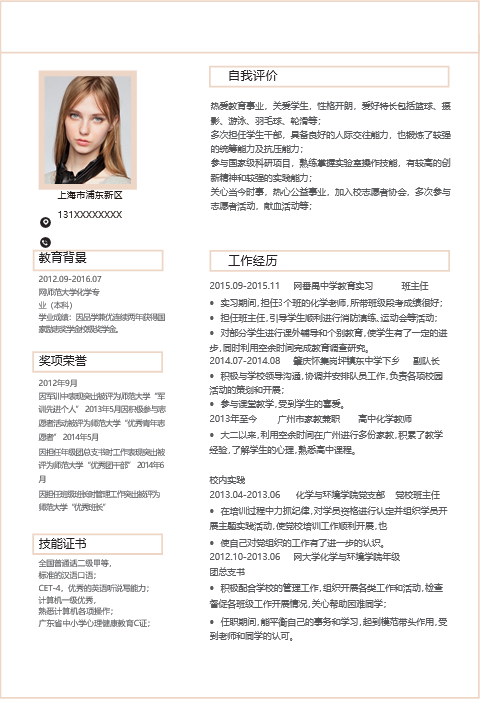 简历为word形式,适合应届毕业生在校招中求职教师岗位使用。