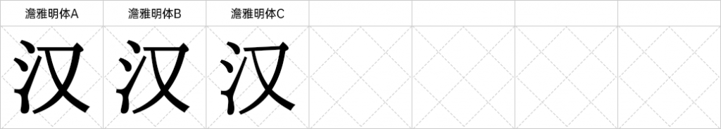 澹雅明体与一点明体的不同之处是,一点明体笔画较细,而澹雅明体把一点明体的笔画进行加粗,使明体字形更有精神,看上去更和谐。