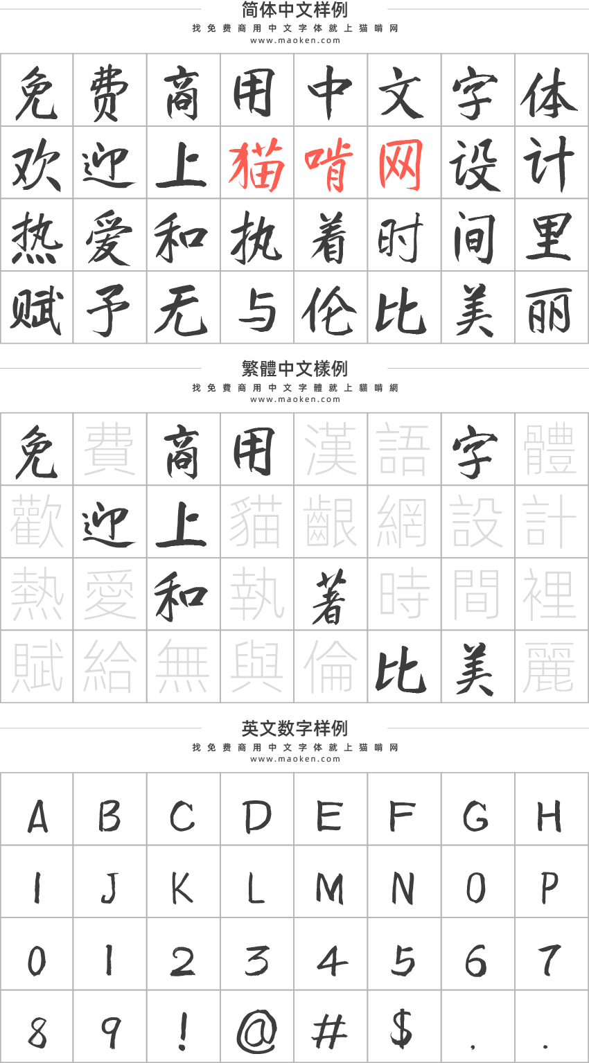 下面的字体使用范围仅供参考,如有特殊需求或疑问,请联系字体作者咨询。