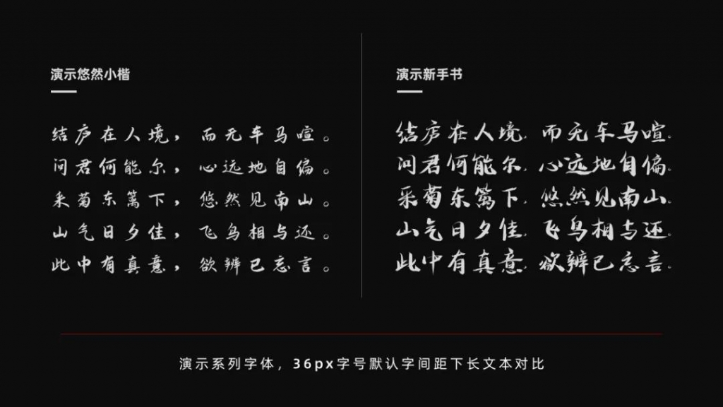 《辞海》有语:形体方正,笔画平直,可作楷模。说的,便是楷书 楷体中以小楷清秀流丽、润泽含蓄,可填补系列字的中庸之位,于是便有了这款演示悠然小楷。