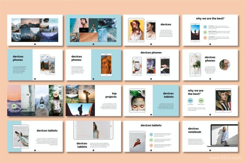 一套现代时尚自然风格的多功能PowerPoint模板,尺寸为16:9的宽屏比例,包含100张独特的幻灯片。模板包括多种信息图表和多张摄影插图,图表直观明了,插图颇具艺术感。模板排版布局专业,整体风格简洁时尚,所有元素都可编辑,您可以任意调整图形大小,根据设计需求自由更改模板内的文字,是商务或个人多用途演示的理想选择。