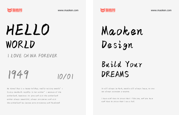 下面的字体使用范围是猫啃网按照经验整理的使用范围,仅供参考,具体的使用范围和场景,或者有特殊的需求或疑问,请自行联系字体作者咨询。