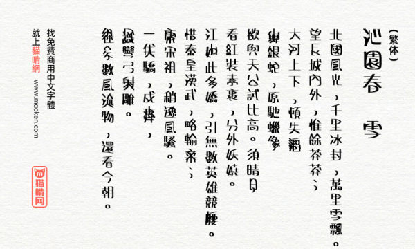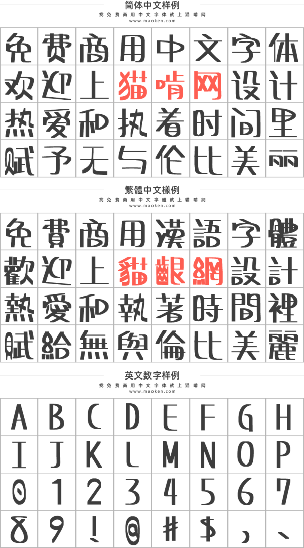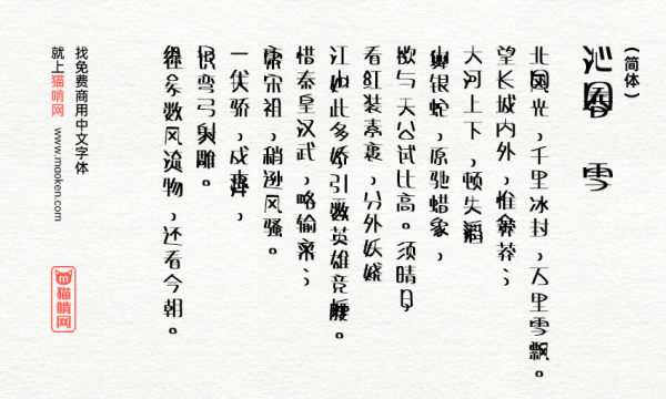 下面的字体使用范围是猫啃网按照经验整理的使用范围,仅供参考,具体的使用范围和场景,或者有特殊的需求或疑问,请自行联系字体作者咨询。