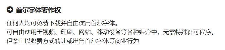 但禁止以收费方式转让或出售首尔字体等商业行为