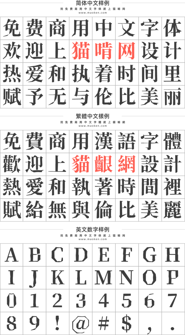 新愚公峥嵘体字体是猫啃网网友@新愚公在业余时间对思源宋体进行改造的一款字体。这款字体加入了随机的扭曲效果,让字体看去上有一种歪歪扭扭的视觉效果,别有一番风味。字体出给人一种做旧复古的感觉,在某些特定的设计也是不错的。