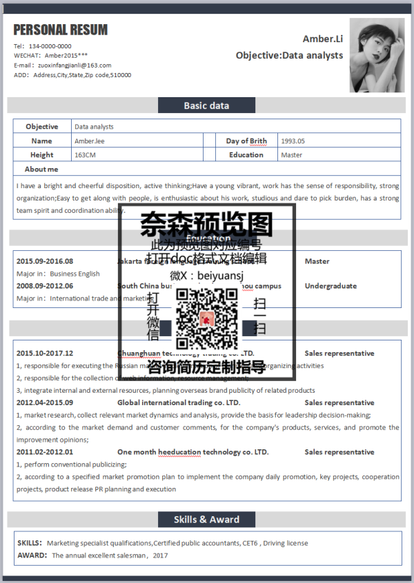 简历为word形式,本模板适合设计在应届生校招中使用。