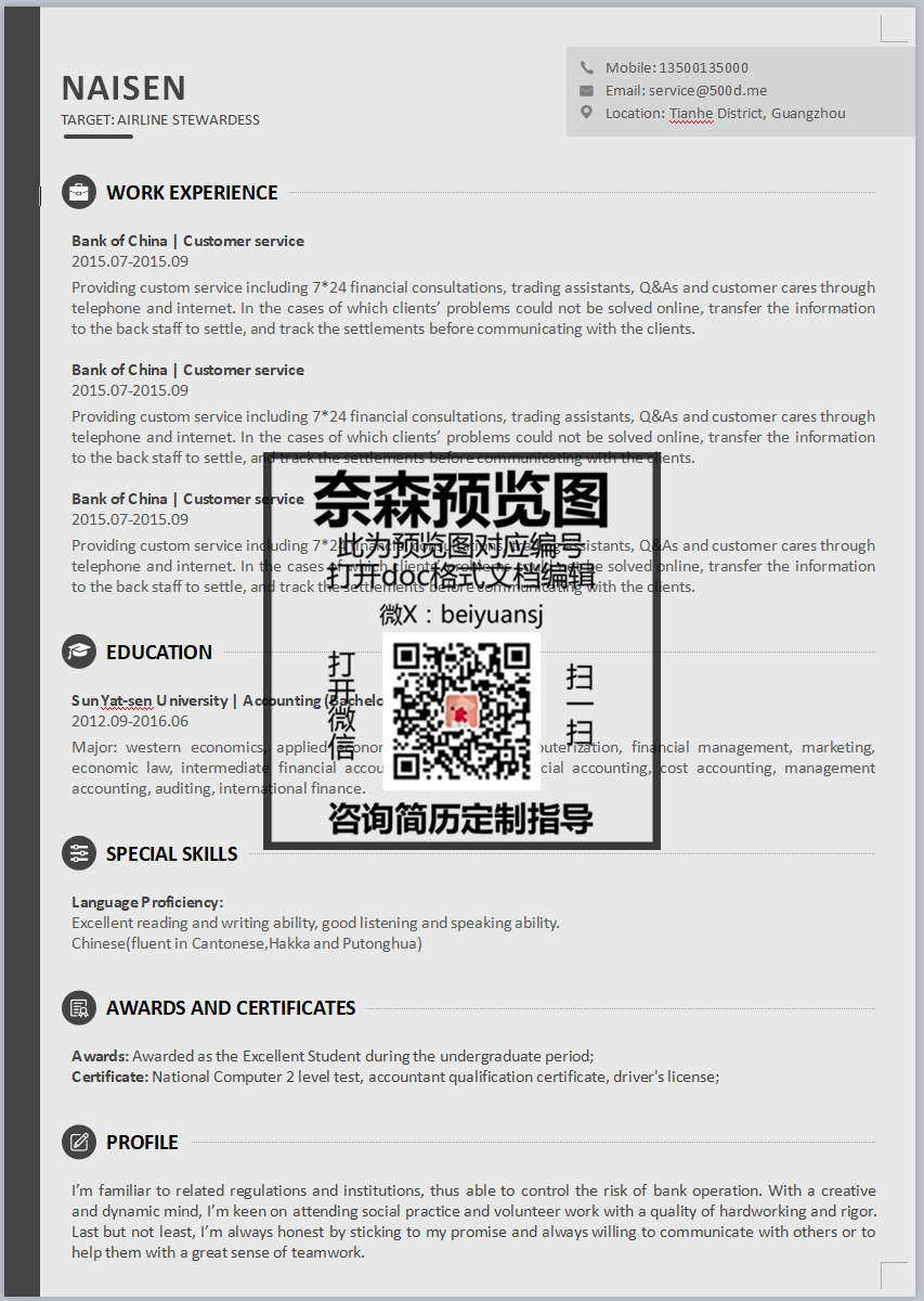 简历为word形式,本模板适合设计在应届生校招中使用。
