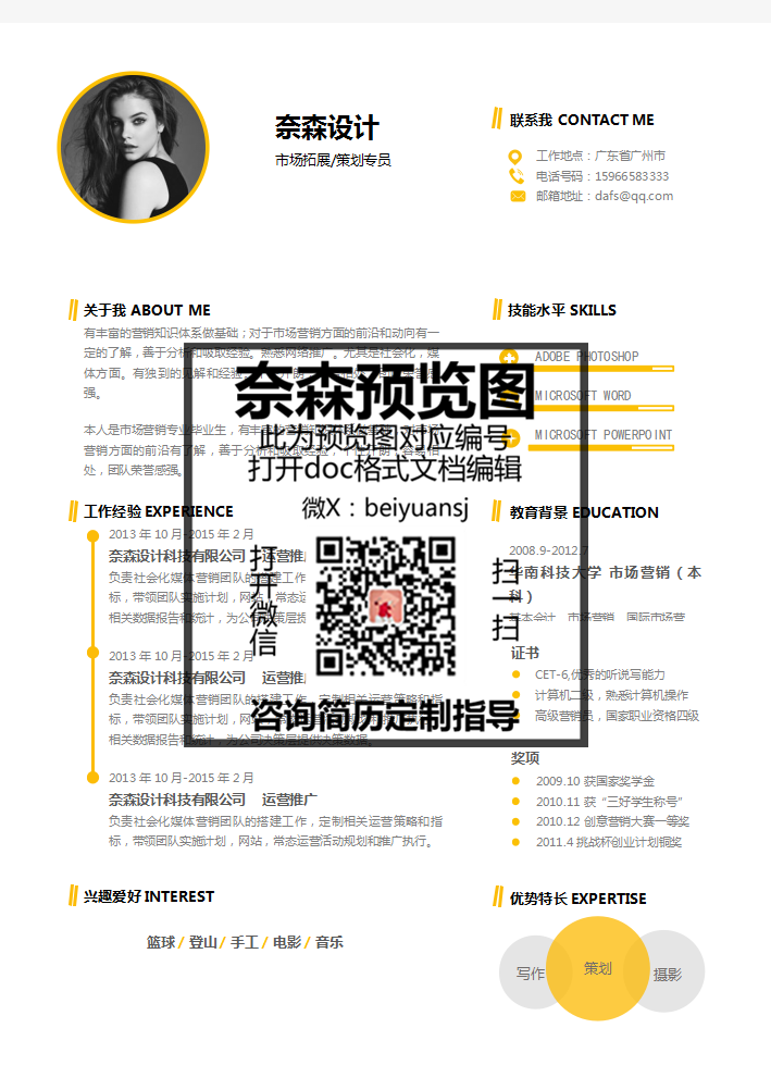 简历为word形式,适合应届毕业生在校招中求职市场行业使用。