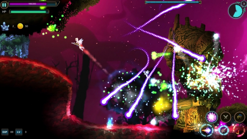 《灵翅(Half Wing)》是一款画面十分简单的横版动作游戏,同时游戏还有弹幕射击的元素,你是时代生活在森林中的灵族的一名年轻人,你的家园被魔族入侵了,大火不仅带走了你往日的安宁生活,也带走了你的一边翅膀,因此你不断学习技能和魔法,想要向着魔族复仇。