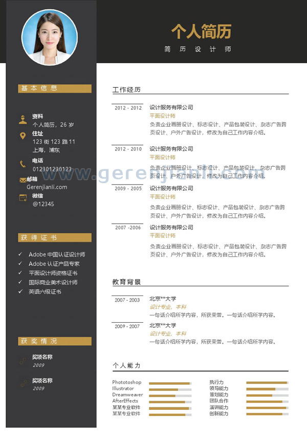 社招必备 求职设计方向简历模板